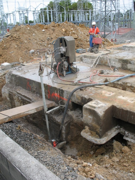 Wire sawing enables concrete to be saw cut to greater depths than conventional cutting with saw blades by using diamond heads on a continuous wire loop. For example concrete plinths can be wire sawed flush with existing floors, large concrete structures removed or cut down with more flexibility such as columns and piles. We have the latest Hi cycle electric wire saw for use in compact areas.